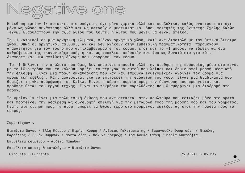 Πολυμεσική έκθεση «μείον 1» | από 25 Απριλίου έως 5 Μαΐου | στον εκθεσιακό χώρο Circuits + Currents, Ναυάρχου Νοταρά και Τοσίτσα, Αθήνα 106 83 20/04/202620/04/2026 POSTERnegative12026Λήψη