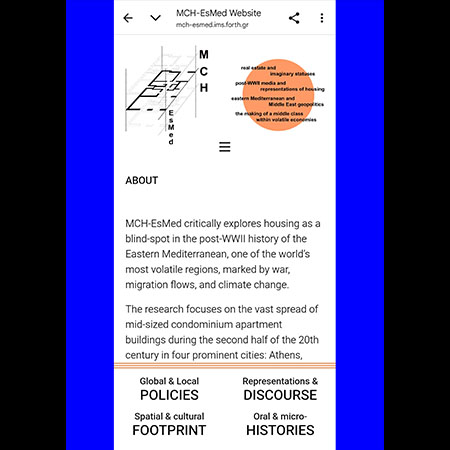 Konstantina Kalfa, Architect (NTUA), is Assistant Professor of architectural history and theory at the Athens School of Fine Arts (ASFA), with a focus on modern and contemporary architecture. Her research and publications explore the complex processes involved in (a) the formation of the architectural profession, (b) the consolidation of architectural forms in specific historical periods, and, ultimately, (c) their interaction with broader social, political, and economic contexts. Her recent work concentrates on housing practices within the framework of postwar “modernization.” She has published in leading international journals and edited volumes in the field of architectural history, including the Journal of the Society of Architectural Historians, Architectural Histories, PLATFORM, ABE Journal, and the volume Architecture in Development: Systems and the Emergence of the Global South, produced by the distinguished Aggregate Architectural History Collaborative. She also co-produced the documentary Antiparochì: A Short Introduction, which features oral histories related to the antiparochi system (land-for-apartments exchange), and co-edited the thematic section “Small-Scale Building Enterprise and Global Home Ownership in the Age of Economic Expansion” in ABE Journal 19 (2022). She is the author of Self-sheltering, now! The invisible side of the American aid to Greece (Athens: Futura, 2019), which is currently being reissued in an expanded edition by Sygchroni Epochi Press. Her book and other publications have received substantial scholarly attention and citation. She served as principal investigator of the research project Antiparochi and Its Architects: Histories of Social Forces, Spatial Policies, and the Architectural Profession in Greece, 1929–1974 (ARCHIPAROCHI, 2018–2022), funded by the Hellenic Foundation for Research and Innovation and the General Secretariat for Research and Technology, with the National Technical University of Athens as the host institution. She is also Principal Investigator of the ERC-funded project MCH-EsMed (https://mch-esmed.ims.forth.gr/).